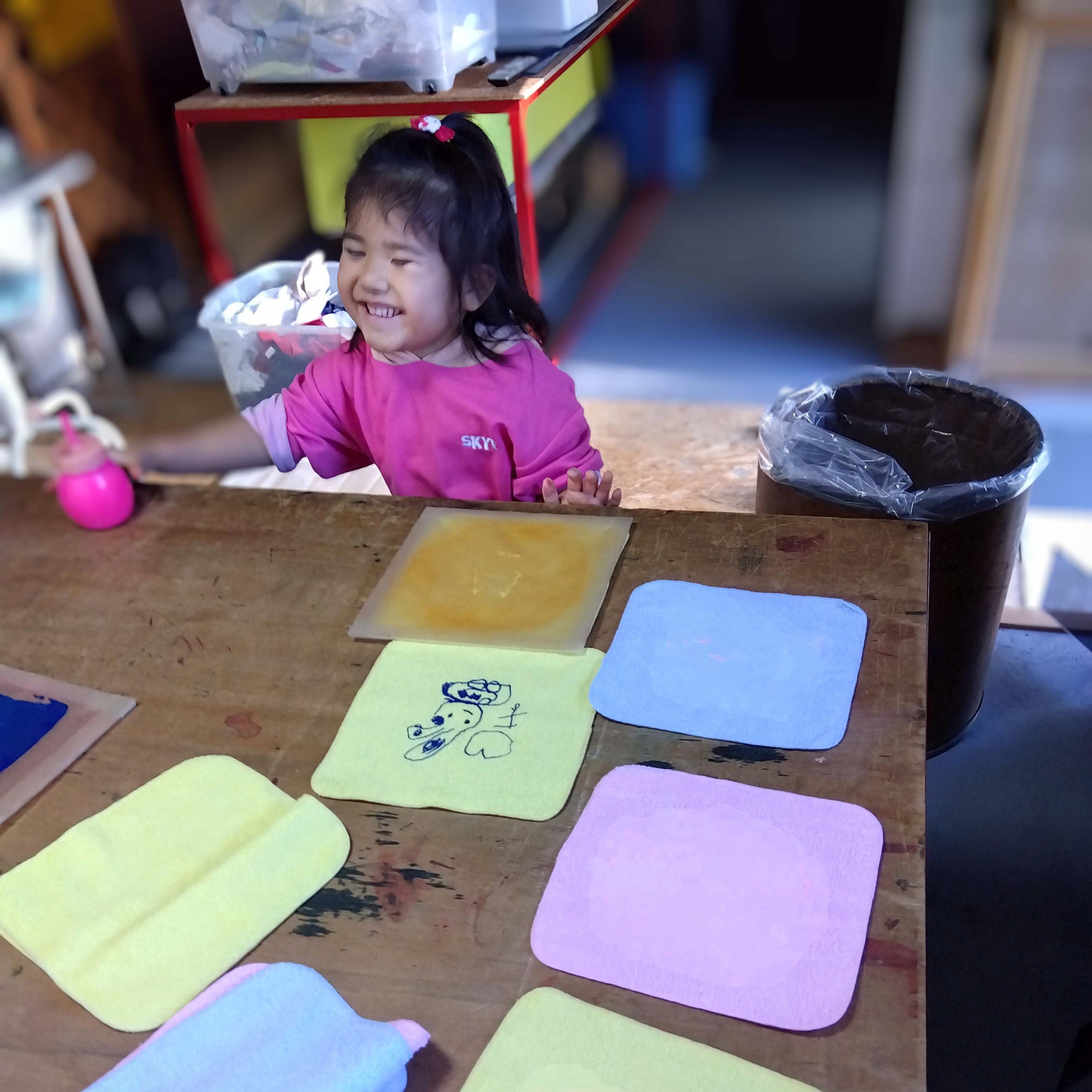 好きな色で好きな場所に好きな枚数、自分でかんたんにスクリーンプリントできます。