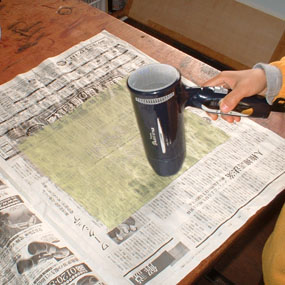 ・あなたの描いた柄をその場で好きな色で布地に自分でプリントできます。